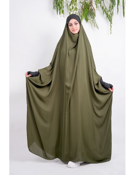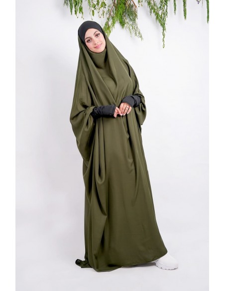 Always more comfort and quality with this jilbab one piece Moultazimoun with sleeves MITTEN EFFECT but it is possible to wear the sleeves simply without mitten effect: