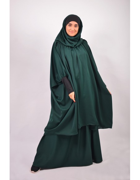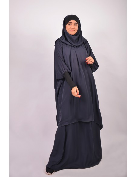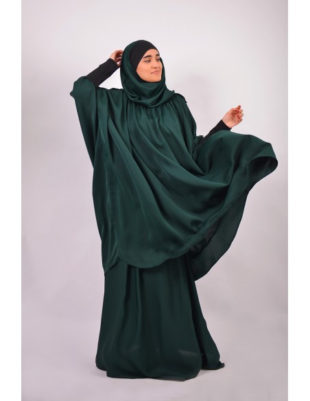 Discreet shades, a fluid and soft fabric, refined details are the recipe for this new overall line with integrated hijab: