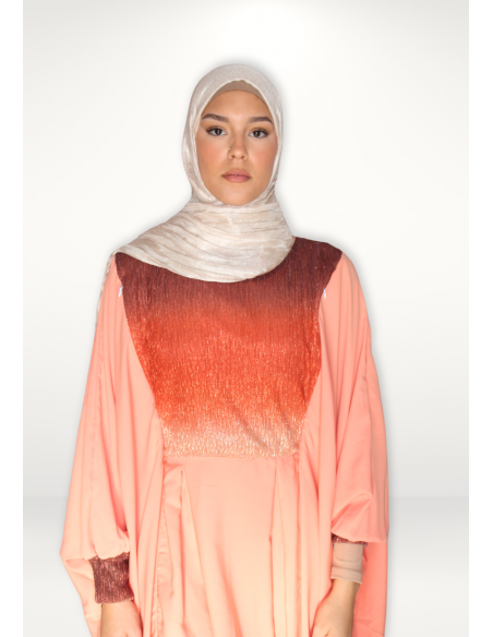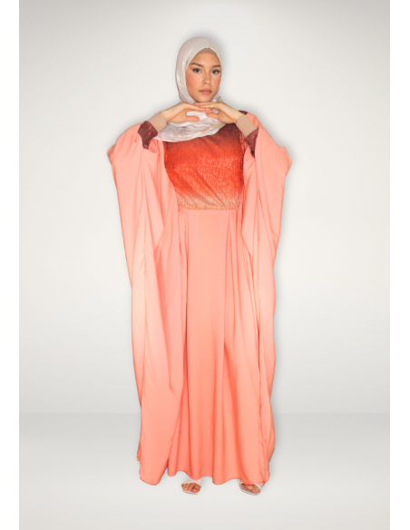 The mini cinched cuffs and wide butterfly cut add a touch of modernity to this model, while ensuring great freedom of movement. This abaya is ideal for all special occasions, offering you an elegant and understated presence.