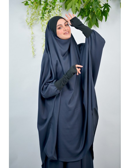 • Guantes sin dedos integrados y cosidos en el jilbab: Para un look armonioso y una funcionalidad incrementada, estas mangas ofrecen comodidad y practicidad, permitiéndote moverte libremente mientras mantienes la elegancia.