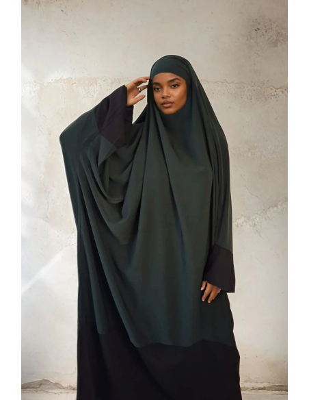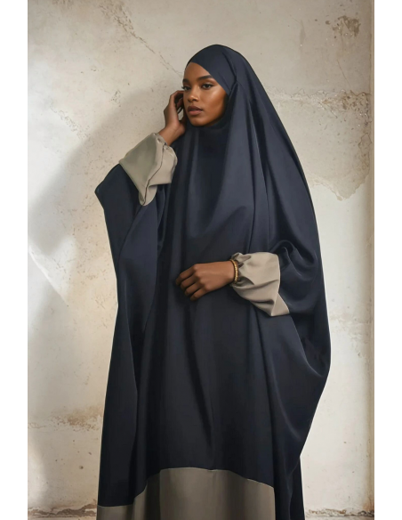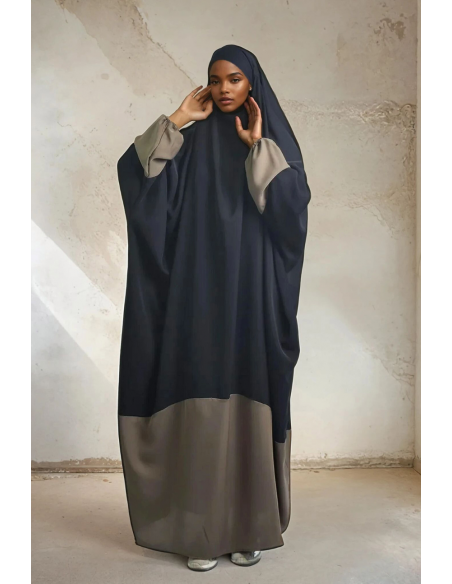 • Des manches aux poignets élastiques s’ajoutent à ce jilbab bicolor et reflètent l’originalité de ce modèle