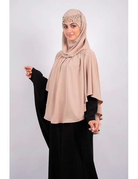 - Le hijab façon jilbab est cousu sur la cape