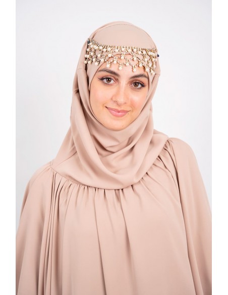 - Le bandeau est intégré au khimar et se noue à la nuque